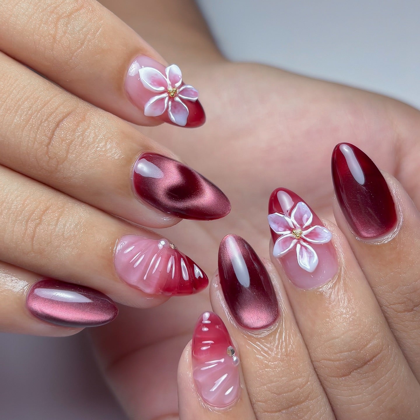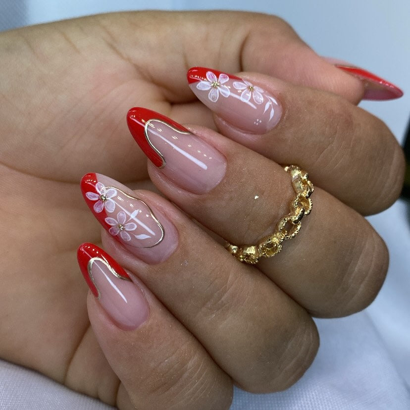 Handmade 3D Floral French Press-On Nails – Pointed Shape