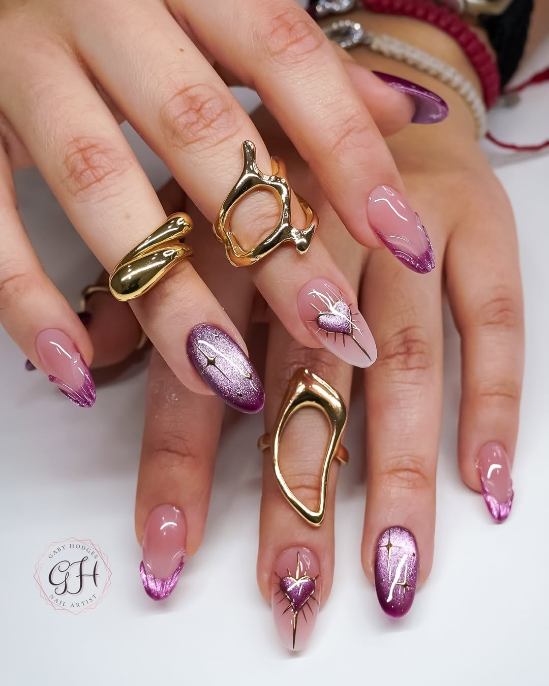 10PCS Y2K 3D Floral Press-On Nails – Almond Shape, Pink Purple