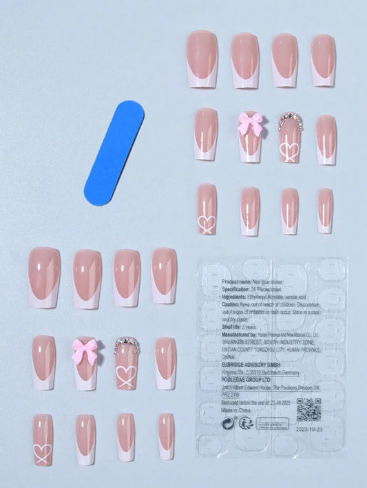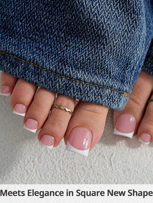 150PCS Short Square Pink French Press-On Toenails