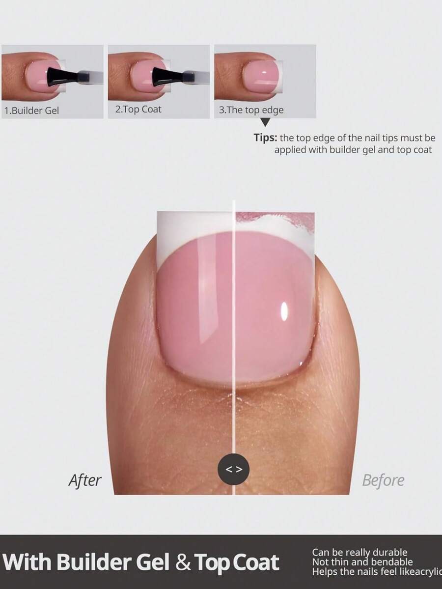 The pink French style looks simple and neat, perfect for everyday wear. The quantity is great for the price. The glue works fine, though I prefer using my own for longer hold.
